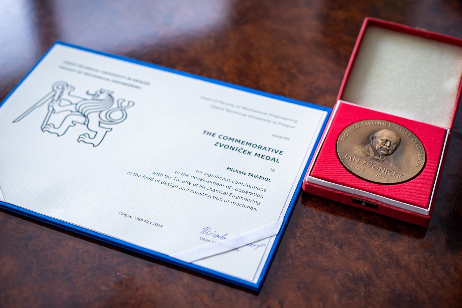 Am Ende des Treffens wurden namhaften Wissenschaftlern und Gästen die Gedenkmedaillen der Tschechischen Technischen Universität (TTU) überreicht. Bei dieser Gelegenheit überreichten der Rektor der TTU und der Dekan der Fakultät für Maschinenbau der TTU eine Gedenkmedaille von Prof. Zvoníček an den Generaldirektor Michele Taiariol für seinen bedeutenden Beitrag zur Entwicklung der Zusammenarbeit mit der Fakultät für Maschinenbau der TTU im Bereich der Konstruktion und des Baus von Maschinen.